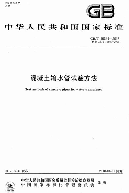 本標(biāo)準(zhǔn)規(guī)定了混凝土輸水管外觀質(zhì)量、幾何尺寸、水壓、外壓荷載、混凝土強(qiáng)度、保護(hù)層砂漿抗壓強(qiáng)度、保護(hù)層砂漿吸水率、管子接頭相對轉(zhuǎn)角等項目的試驗(yàn)方法。